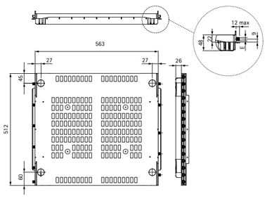 Cadru suport cu aerisire, pentru corp de frigider incastrabil 31/73.A10, de la VOLPATO Italia. Dimensiune Lățime 563mm, Adâncime 512mm, Capacitate de încărcare 350kg. Picioarele se comanda separat si sunt disponibile in 2 inaltimi: H100mm - cod:05.2520.14 sau H120mm - cod: 05.2530.14.