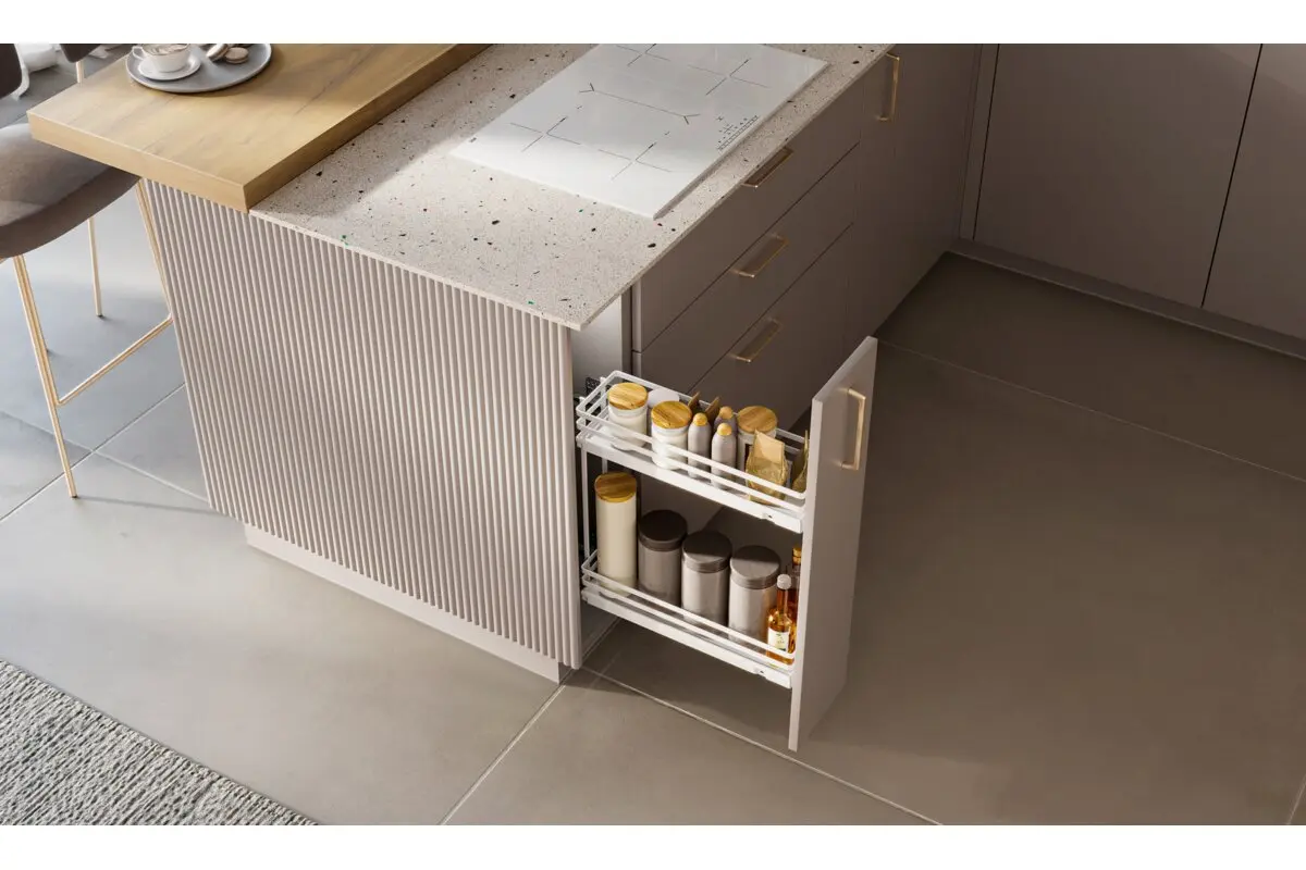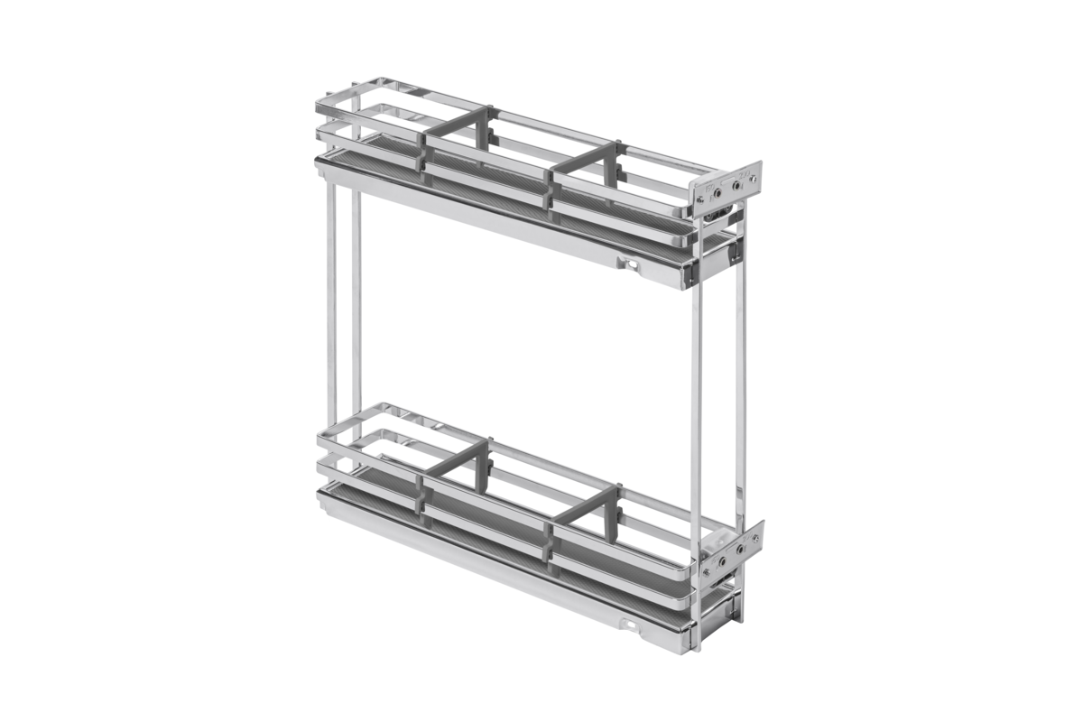 Cos Jolly MOVIX PRO, de la GTV, pentru corp de 150mm, disponibil in 3 finisaje, este solutia ideala pentru organizarea bucatariei tale. Glisierele, care se achizitioneaza separat, sunt testate la 60000 de deschideri si sunt cu extractie totala si amortizare la inchidere. Adancimea minima a corpului: 480mm.