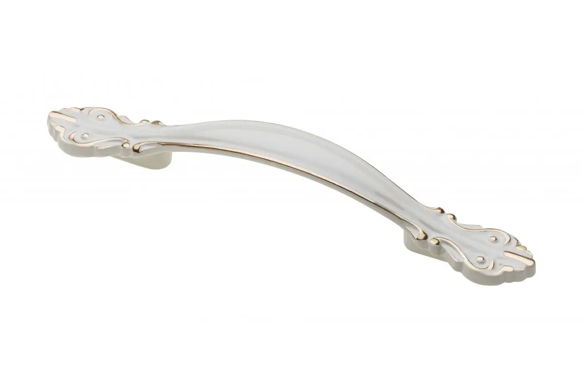 Mâner ROYAL 2 elegant, finisaj alb-auriu, dimensiune 96mm. Ideal pentru mobilier clasic sau modern cu accente rafinate.