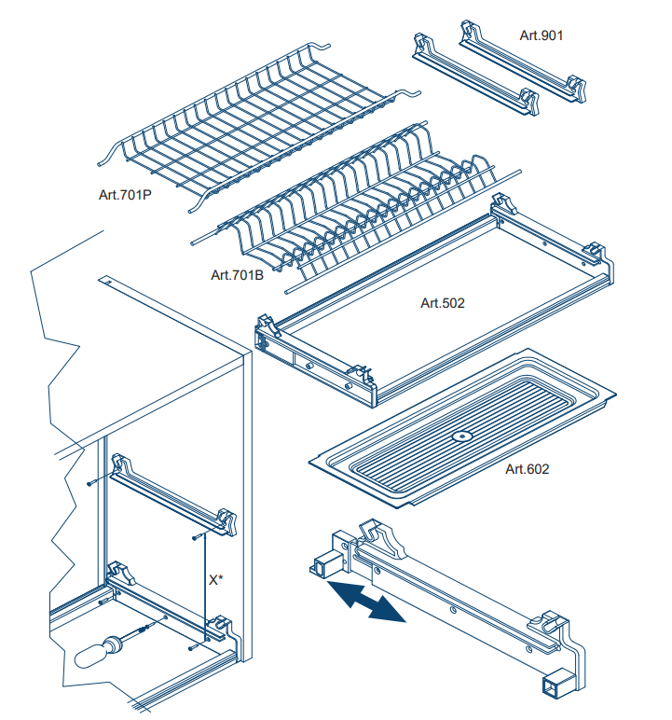 Scurgator de vase, cu cadru, cu 2 nivele, de la INOXA Italia. Material plastic + otel zincat.